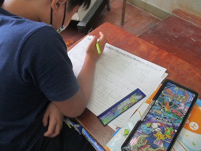 2けたでわるわり算の筆算のまとめ問題にチャレンジしている4年生。じっくりと問題をみて,集中しています。苦手なところは,今までのノートを見て確認する姿はとても素晴らしいなと思います。明日も頑張りましょう!