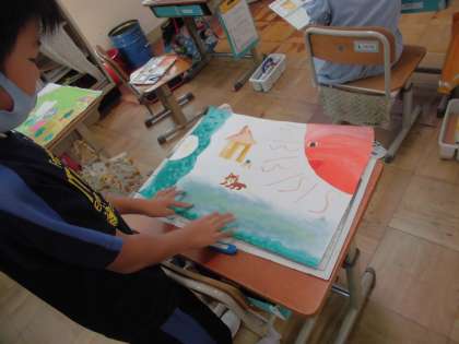 絵の具では,自分だけのすてきな色を作ってぬっています。