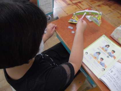 手では重さの違いがわからないこともあったので,てんびんを使ってくらべてみました。