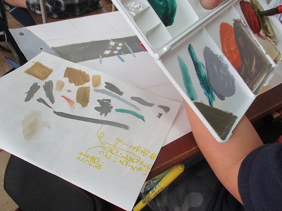 4年生は図工の学習でお話の絵をしています。先週から少しずつ下描きに色を塗っています。絵の具そのままの色ではなく,何色かを混ぜたり,水の量を調節したりして丁寧に色を重ねています。