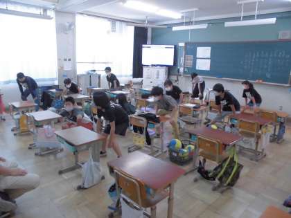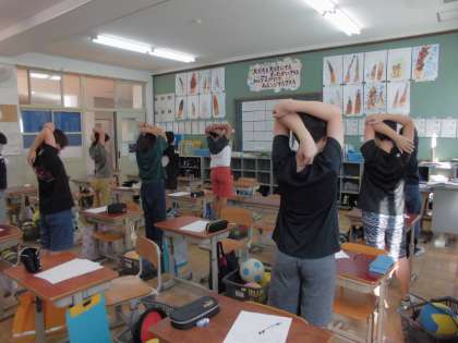体育参観に向けて,高学年の部で担当する「準備体操」の中身と役割を決めました。