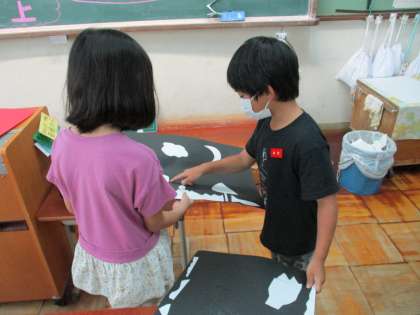 作った作品を見せ合って「何に見えるかなクイズ」をしました。