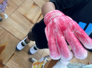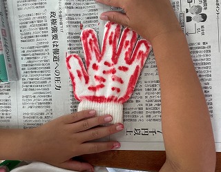 今日は体育参観日に使う予定の手袋に飾り付けをしました。