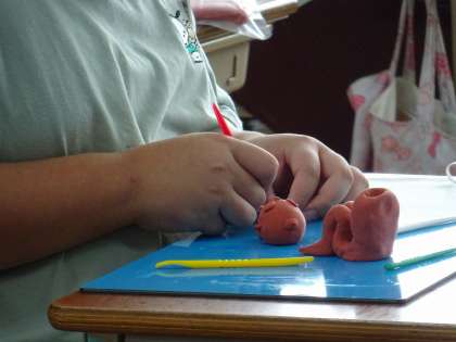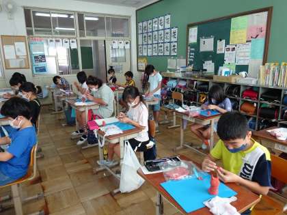 図工では,テラコッタ風に仕上がる粘土を使って,自分だけの守り神を作りました。表情や持っているものに,「悪いものをはねのける」や「家族の絆を深める」など,いろいろなご利益が!!みんなに幸運を運んでくれること,間違いなしです♪