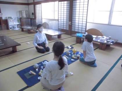 久しぶりの部活動です。お茶のお稽古も久しぶりです。先生の指示を聞きながら,今まで習ったことを思い出しています。今日もおいしいお茶ができました。