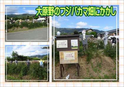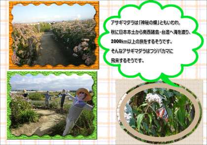 10月4日に3年生が作ったかかしは今,大原野のフジバカマ畑の周りに立てていただいています。そこにはアサギマダラも飛来していました。