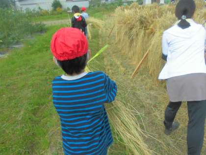 2年生は,先日稲かりをした田んぼに行きました。