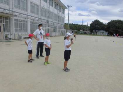 出場種目のアナウンスをする人たちは,自分で言葉を考えて覚えてきました。