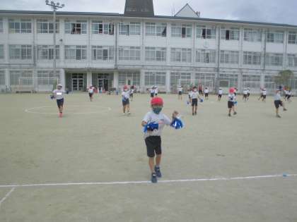 3くみ うんどうじょうで リズムダンスをおどったよ