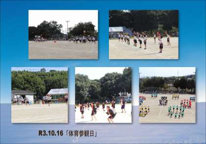 本日,秋晴れの下「体育参観日」が行われました。夏休み明けよりどの学年も一生懸命取り組んできました。当初の雨予報から晴天に恵まれたのも皆さんの思いが通じたのではないでしょうか。一人一人が頑張る姿を見ていると本当に勇気と感動をいただきました。コロナ禍の中なかなか思うように行動ができない日々が続いていますが,今できることを精一杯がんばっていきましよう。ご来賓の皆様,保護者の皆様,本日はご参観いただきありがとうございました。今後ともよろしくお願いいたします。
