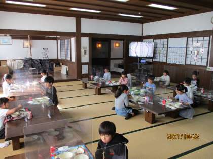 2年 「いろりの間で給食」
