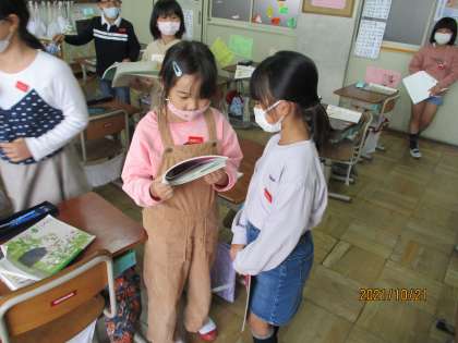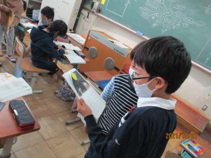 食べ物や虫が多く出ました。絵と文にかいて,みんなに伝えました。