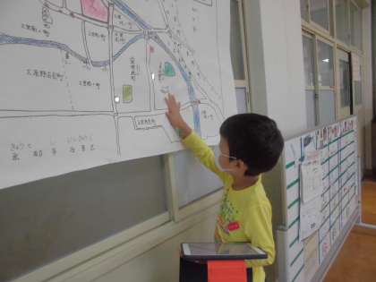 自分の家の近くにある公園で「お友だちとブランコしたいな。」「○○さんの家がどこかしりたいな。」など,校区をめぐるのを楽しみにしているのがよく分かりました。