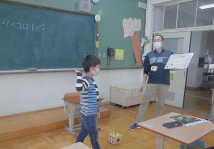 今日は上里トークタイムでした。サイコロをふって,とまったマスに書かれているテーマで話をします。