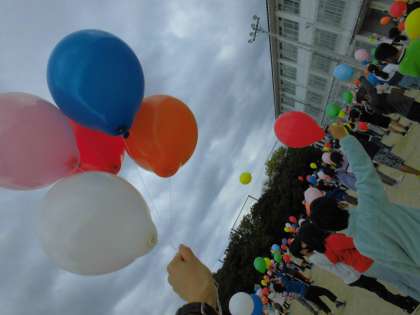 バルーンが飛んでいく様子を見て,子どもたちは歓声を上げていました。
