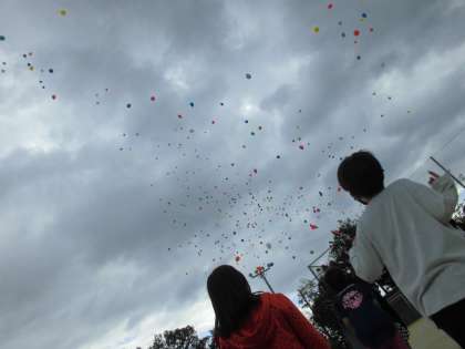 バルーンリリースでは,一人ひとりがバルーンに願いを込めて飛ばしました。