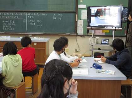 水100gに食塩5gを溶かしたら全体で何gになるか,予想をしてから実験しました。実験の仕方は,映像で確認をしました。