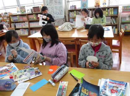 それぞれの委員会に分かれて活動をしました。図書委員では,年度末に全校に配るしおり作りをしました。