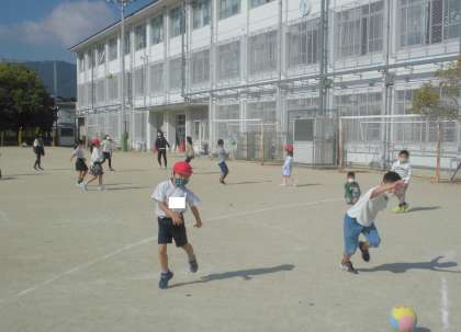 中間休みには,1年生と一緒にだるまさんがころんだをしたり,ボールあそびをしたりしました。