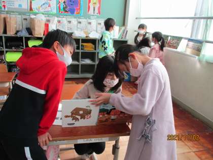 1年生に本を選ばせてあげているところが,さすが2年生だなと感心しました。