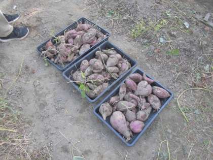 実際に掘ってみると,思った以上に大きな芋もあり,とっても嬉しそうに掘っていました。掘った芋は,来週の火曜日に焼き芋にして食べる予定をしています。