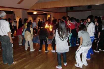 夕食後,ボンファイアーをして,みんなで楽しい夜を過ごしました。