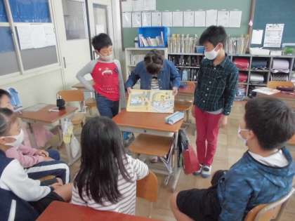 そして,今日は1年生に読み聞かせに行きました。