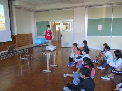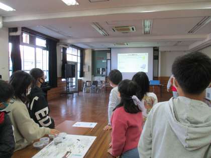 自動車と環境とのつながりについてお話を聞いた後,車のリサイクルについてクイズ形式で考えました。真剣にチームで話し合いをし,答え合わせをしました。見事全問正解!さすがです!