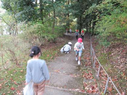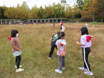 外でウォークラリーをしたり,お弁当を食べたり,秋を見つけたり,