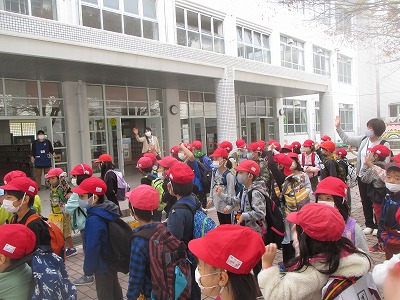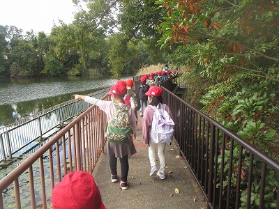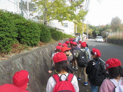 道中は,安全に気を付けて,2列に並んで歩いていきました。