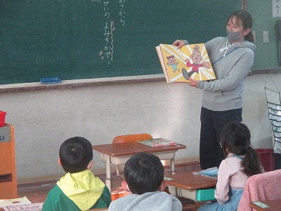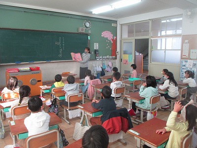 どんぐり読書月間で,宮本先生に読み聞かせをしてもらいました。