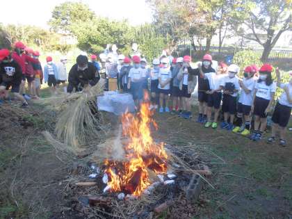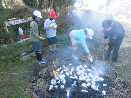 自分たちで掘った芋を火の中に入れ,しばらく待ちました。