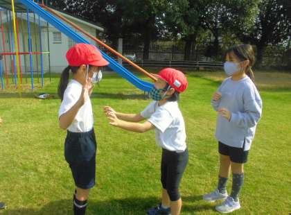 後半は,おにあそびで,しっぽとりをしました。最後までしっぽがとられないよう逃げ切っていました。