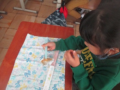 子どもたちは,「おいしい!もちもちや」「甘いなぁ」と,