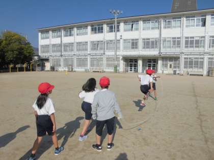 なわとびでは,長縄で,へびとびや八の字,通り抜けなどに挑戦しています。