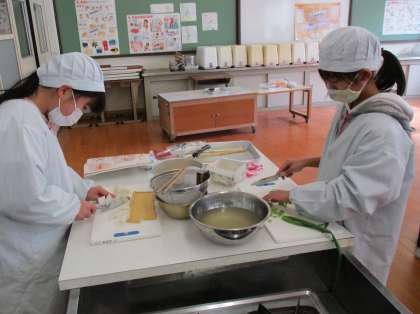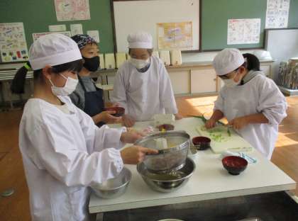 出汁をとり,おみそ汁を作りました。実の入れる順番にも気を付けて活動できました。