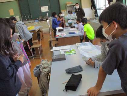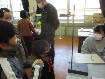 ひもの長さを変えて,往復する時間を計りました。おもりが机に当たらないように気を付けながら,正しい実験結果になるように意識して取り組めました。
