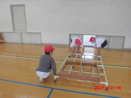 ねらい1からねらい2に場の設定をかえる時に,自分から跳び箱をもったり,マットを移動させたりするなど,友だちと一緒に活動していました。
