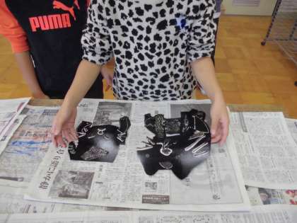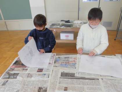 図画工作の「いろいろうつして」の学習では,版が仕上がったので刷りました。