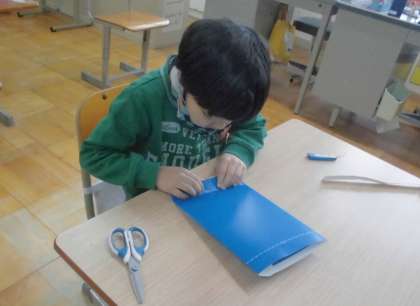 その後,配達バックを作りました。子どもたちも郵便局員として配達できるのを楽しみにしているようでした。
