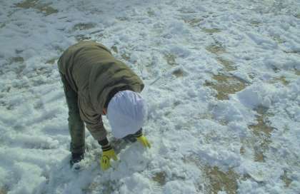 空き容器に雪を詰めて,「アイスケーキ」を作ったり,雪だるま作りに挑戦したりしました。
