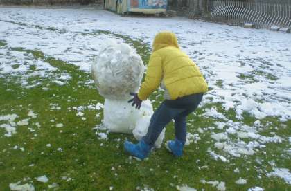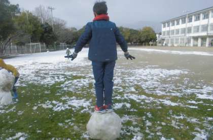 上里小学校にも少し雪が積もりました。子どもたちは,雪遊びを楽しみにしていたので,さっそく予定を変更して雪遊びに行きました。