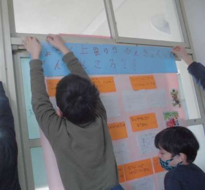 年末に3組ポストに入っていたお手紙の配達にいきました。配達バックと3くみ郵便局の局員名札をつけて,配達に行きました。配達に行ったクラスの子どもたちも先生方もお手紙をもらってとてもうれしそうでした。配達している3組の子どもたちも,それを見てうれしそうでした。
