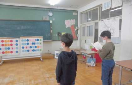 今日は教室で音楽発表会の練習をしました。言葉がはっきりと大きな声で言えるようになってきました。