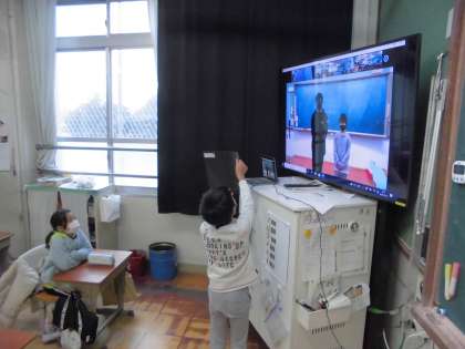 今回の児童朝会もZOOMを使って行いました。