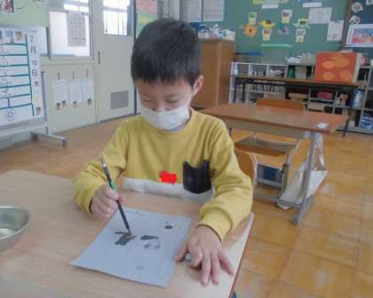 筆を上手に立ててもてるようになってきました。筆の運びも少しずつ上手になってきたようです。