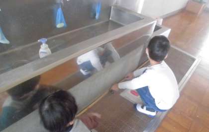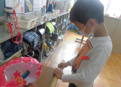 1メートルをこえるものの長さを予想してから実際にものさしで測ってみました。給食台の横の長さやホワイトボードなどを測りました。給食台を広げると,2メートル以上ありました。それより長いものは,ないかなと探してみると,手洗い場があるのをみつけて測りました。
