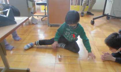 できた車を動かして見ると,コトコトと動きました。電池が回って動くので,コトコトとおもしろい動きをします。友だちにも見てもらって,何度も動かしていました。