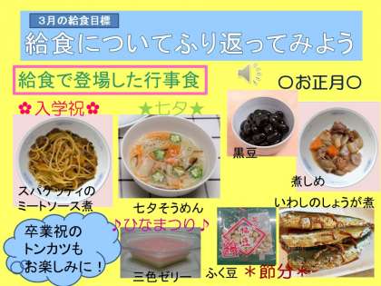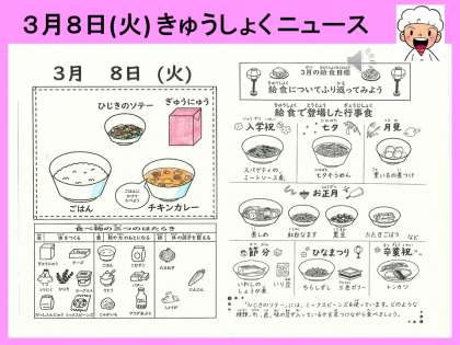 今回のニュースでは,給食に登場した行事食についてふりかえりました。行事食にこめられた願についても知ることができました。