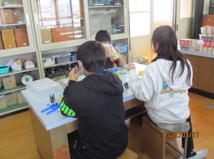 電磁石を使ってモーターを回す活動をしました。組み立てが複雑でしたが,友達と協力して取り組むことができました。